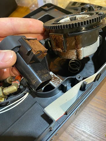 Macina putina cafea-reparatie numaidecat ca sa nu ajunga cafea la motor rasnita si sa arda